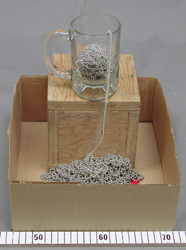 (make sure red tab is on top) (reverse the process with funnel to get the chain back in the glass) |