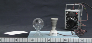 (place globe 10 cm from filament, set variac between 50-60) (check that room lights do not affect radiometer) |