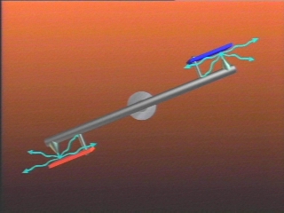 | An air powered rotator spins in one direction with unrestricted outlets, and in the other direction when deflectors block the outlets. (Disc 6-3, 1 min. 12 sec.) |