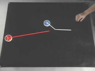 | A variety of elastic collisions between moving and stationary pucks of equal mass are shown. (Disc 5-6, 47 sec.) |