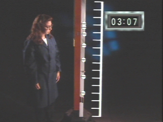 | An Atwood's machine is momentarily unbalanced by an additional mass, causing the weights to accelerate in opposite directions. After the additional mass is removed, the weights continue moving at a constant velocity. (Disc 1-16, 1 min. 11 sec.) |