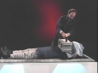 | A cinder block is smashed on top of a person laying on a bed of nails. (Disc 4-20, 1 min. 7 sec.) |