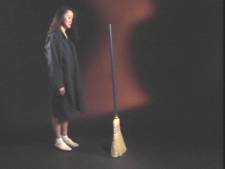 | By spreading the bristles, a normally unstable broom is made to stand by itself. (Disc 4-19, 30 sec.) |
