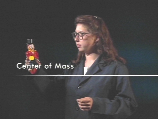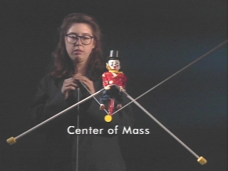 | A toy clown holding a weighted rod demonstrates how lowering your center of mass increases stability. (Disc 3-23, 34 sec.) |