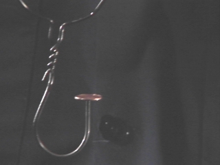| A penny balanced on a coat hanger shows that centripetal forces act along a radial line. (Disc 5-18, 36 sec.) |