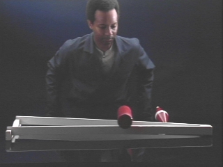 | A cylinder rolls down a triangular shaped incline, but the double cone appears to roll uphill in the opposite direction. (Disc 3-24, 50 sec.) |