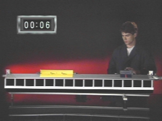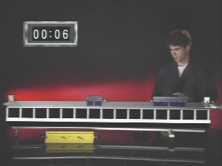 | A variety of collisions between gliders of equal and unequal mass are performed on an air track . (Disc 5-2, 1 min. 45 sec.) |