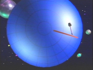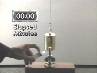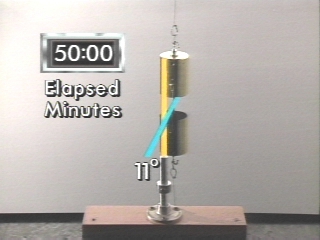 | A Foucault pendulum is shown at equal time intervals, and a computer animation shows why the movement is related to the Earth's rotation. (Disc 6-13, 1 min. 54 sec.) |