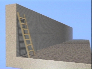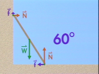 | This computer animation illustrates, with 3 examples, how the forces on a ladder depend on the angle it makes with the wall. (Disc 4-18, 41 sec.) |