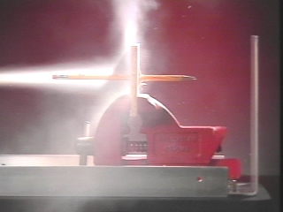 | A fire extinguisher shoots a pencil through a piece of 1/2" plywood. (Disc 2-17, 47 sec.) |