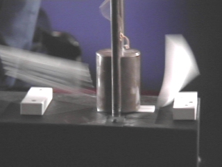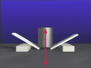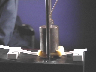 | A piledriver that normally breaks a piece of plastic, does not break it when a piece of foam is placed on top. (Disc 5-10, 50 sec.) |