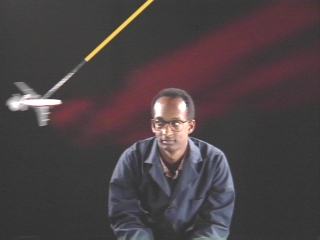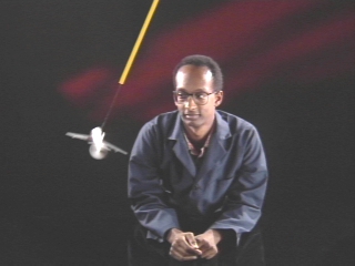 | A plane on a cord demonstrates that centripetal force increases in proportion with angular velocity. (Disc 5-19, 37 sec.) |