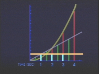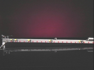 | A ball is rolled down an incline, as an example of motion under constant acceleration. (Disc 1-10, 1 min. 34 sec.) |