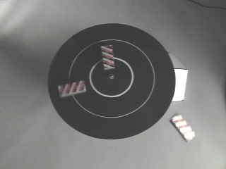 | Erasers flying off a rotating disc demonstrate that angular velocity increases with radius. (Disc 5-15, 40 sec.) |