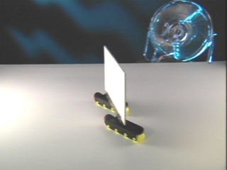 | The technique of sailing into the wind is explained using a sail on roller skates and computer animation. (Disc 2-10, 46 sec.) |