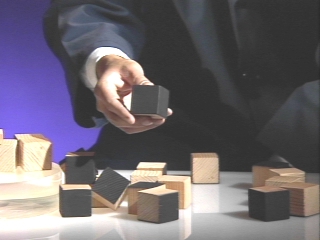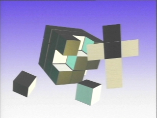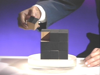 | A cube made of 27 smaller cubes demonstrates the relation between surface area and volume. (Disc 14-16, 39 sec.) |