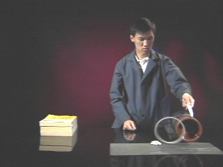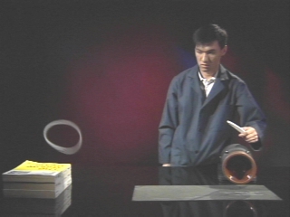 | A rapidly rotating chain behaves like a solid ring, and even jumps a barrier. (Disc 5-24, 43 sec.) |