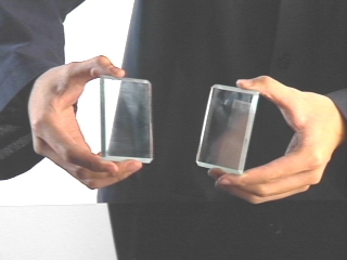 | Two glass plates are held together by the force of cohesion and external air pressure. (Disc 11-13, 39 sec.) |