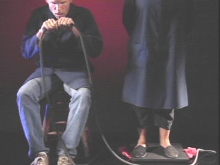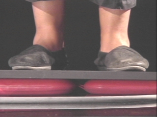 | A human subject is lifted by inflating air bladders with lung power. (Disc 11-17, 30 sec.) |