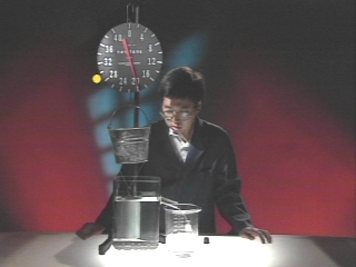 | This is the classic demonstration proving that the buoyant force on a submerged object is equal to the amount of water displaced by the object. (Disc 12-12, 1 min. 28 sec.) |