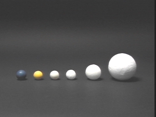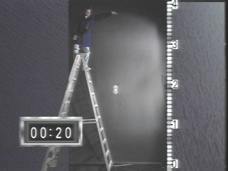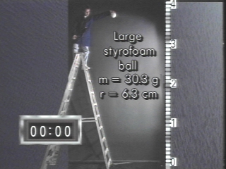 | Balls of various composition are dropped from a high ladder to allow quantitative measurement of acceleration and drag. (Disc 14-3, 54 sec.) |