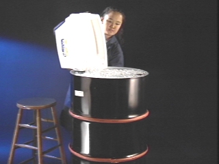 barrel is sealed and cooled with ice, atmospheric pressure crushes it