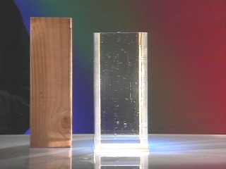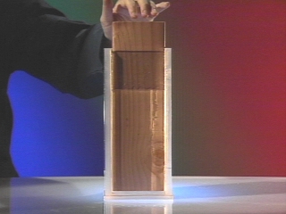 | A small amount of water floats a large block of wood in a close-fitting container. (Disc 12-17, 46 sec.) |