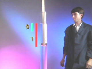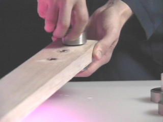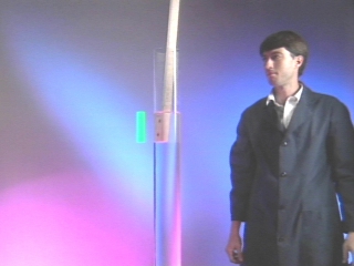 | The submerged length of a float increases by a constant amount with the successive addition of identical masses. (Disc 12-13, 53 sec.) |