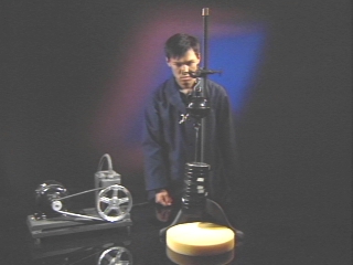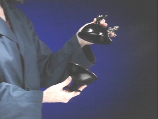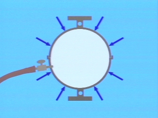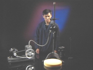 | Magdeburg hemispheres on a stand are evacuated, and weights are hung from them in an attempt to pull them apart. (Disc 11-12, 1 min. 31 sec.) |