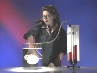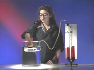 | A large membrane is rotated in a tank of water to show that pressure is independent of direction. (Disc 12-4, 48 sec.) |