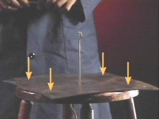 | A stool is lifted by a rubber sheet held to it only by atmospheric pressure. (Disc 11-19, 26 sec.) |