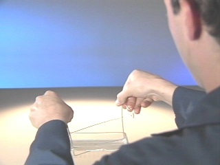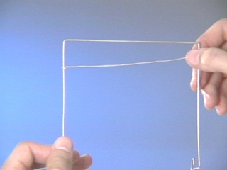 | A wire frame with one side that is free to move is pulled together by the surface tension in a soap film. (Disc 13-21, 22 sec.) |