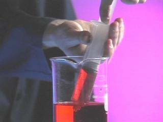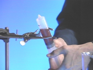 | A syringe is used to show that fluid velocity is different in tubes with different cross-sectional areas. (Disc 13-11, 50 sec.) |