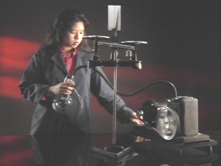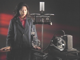 | A flask is weighed, then evacuated and weighed again to show the weight of air. (Disc 12-10, 1 min. 17 sec.) |