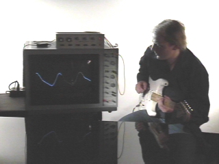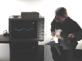 | Waveforms produced by guitar strings are displayed on an oscilloscope. (Disc 10-1, 1 min. 7 sec.) |