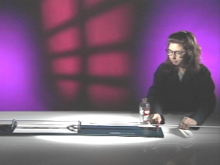 | The standing wave pattern generated by a "singing rod" in a glass tube moves cork dust toward the nodes, producing an image of the pattern. (Disc 11-3, 39 sec.) |