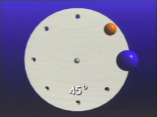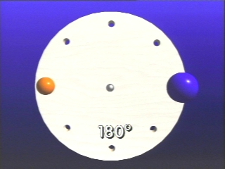 | The angular separation between two balls on a rotating disc is used to model phase differences in harmonic oscillations. (Disc 8-22, 1 min. 3 sec.) |