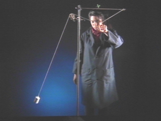 | A pendulum whose length can be varied is used to explain how a child pumps up a swing. (Disc 9-4, 1 min. 6 sec.) |