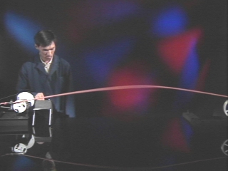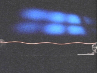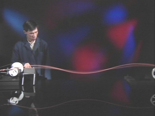 | A variable frequency motor is used to create standing waves on a rubber tube. (Disc 9-28, 1 min. 36 sec.) |