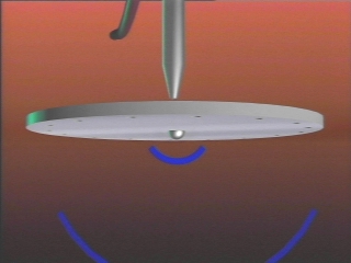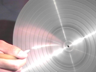 | Different frequencies are heard as an air jet is scanned over a siren disc. (Disc 10-10, 1 min. 3 sec.) |
