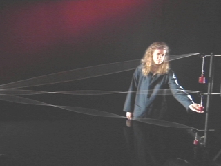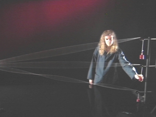 | Different amounts of tension applied to three identical, harmonically driven strings yield different standing wave patterns. (Disc 9-27, 54 sec.) |