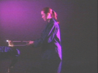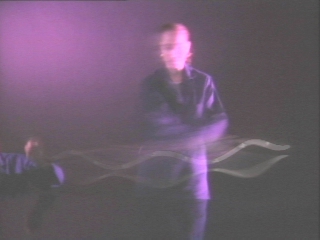 | A large tuning fork with a light on one tine displays simple harmonic motion when moved laterally. (Disc 8-10, 31 sec.) |