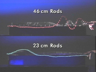 | Wave propagation speed on Shive wave machines with different length rods is compared. (Disc 9-13, 28 sec.) |
