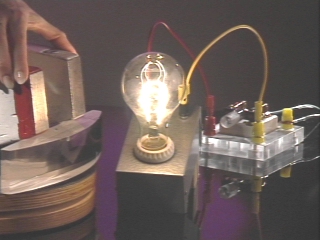 | A light bulb filament in a magnetic field moves when current is applied. (Disc 20-7, 48 sec.) |