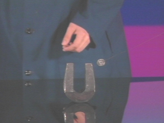 | A Canadian nickel is heated above its Curie point and falls away from a strong magnet. (Disc 19-24, 33 sec.) |