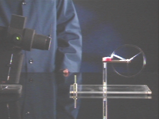 | A nickel alloy wheel rotates between the poles of a horseshoe magnet when an arc lamp heats the portion of the wheel just above the magnet. (Disc 19-25, 45 sec.) |