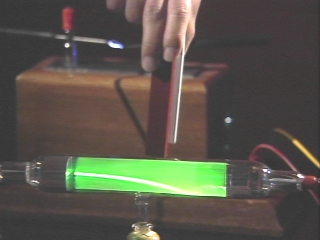 | An electron beam is deflected by a horseshoe magnet. (Disc 20-3, 50 sec.) |