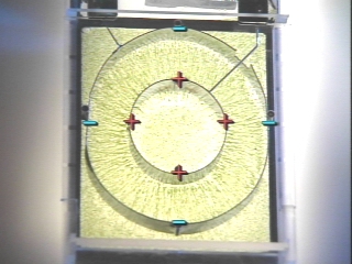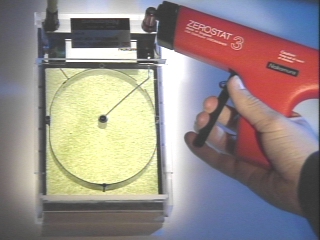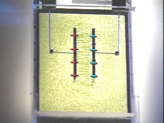| An electric field demonstrator reveals the electric field lines for three electrode configurations. (Disc 17-10, 53 sec.) |