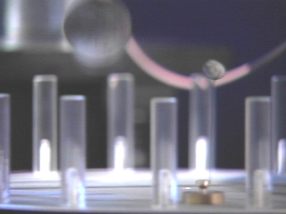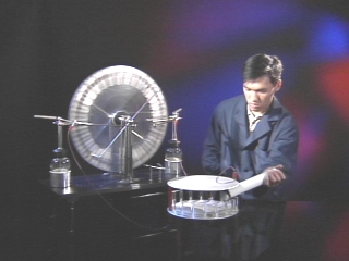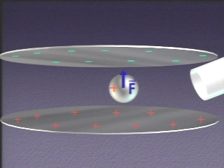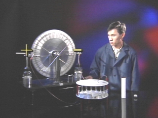 | A conductive ping-pong ball bounces energetically between two metal plates charged by a Wimshurst machine. A computer animation explains the events. (Disc 16-24, 1 min.) |