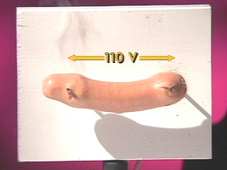 | An electric current running through a hot dog generates enough heat to cook it. (Disc 18-7, 34 sec.) |